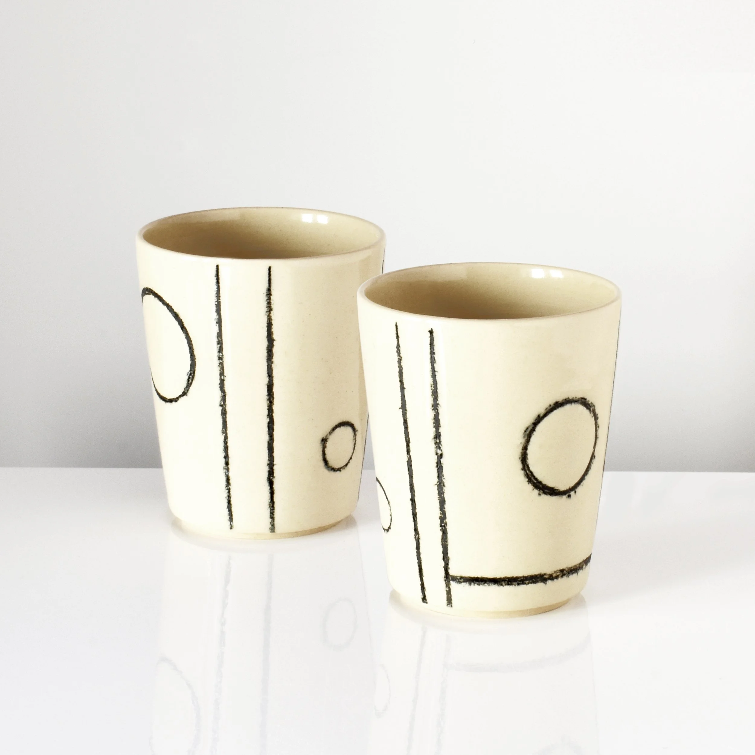 I make an exclusive collection of hand-thrown stoneware for the Kettle’s Yard shop. The range is inspired by my frequent visits to Jim Ede’s beautiful home, and references some of its familiar motifs and hidden treasures. Some pieces are one-offs while others are repeated with subtle variations. Examples include: