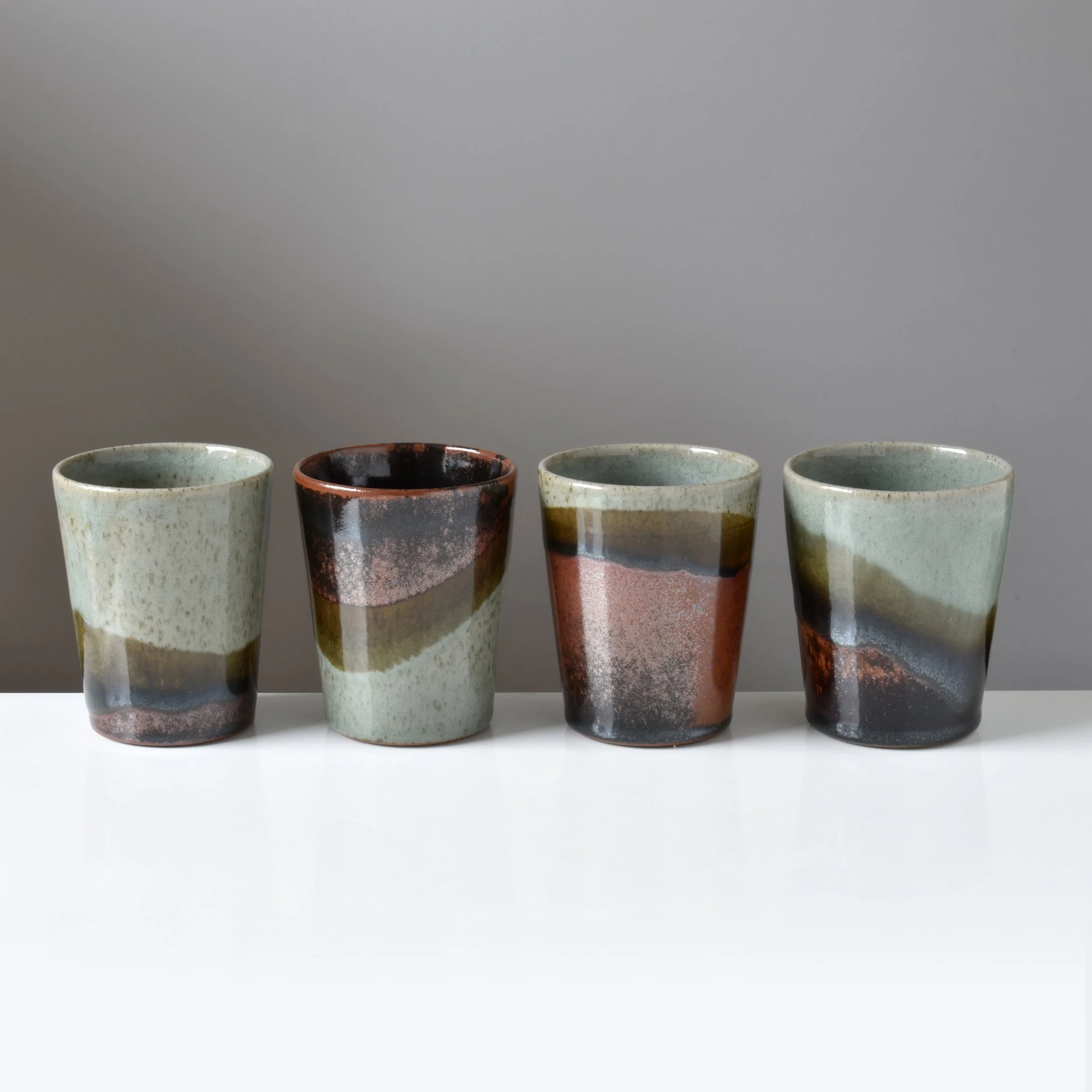 My reduction-fired pieces explore two historic, high temperature iron-based glazes and their aesthetic interaction with contemporary forms: